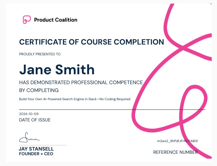 We use Certifier.io for processing and issuing your verifiable certificate creation. This is a benefit only available to paid members of the Product Coalition.