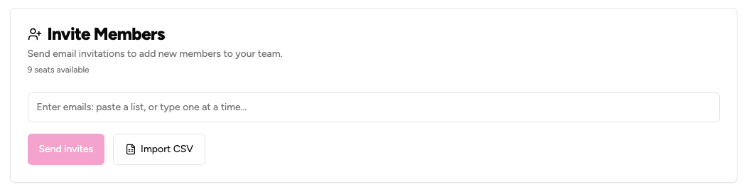 Bulk onboarding was the other critical piece. That VP of L&D didn’t want to type thirty email addresses. She wanted to paste from a spreadsheet. So we built multi-email paste (smart parsing for commas, semicolons, newlines) and CSV import for larger teams.