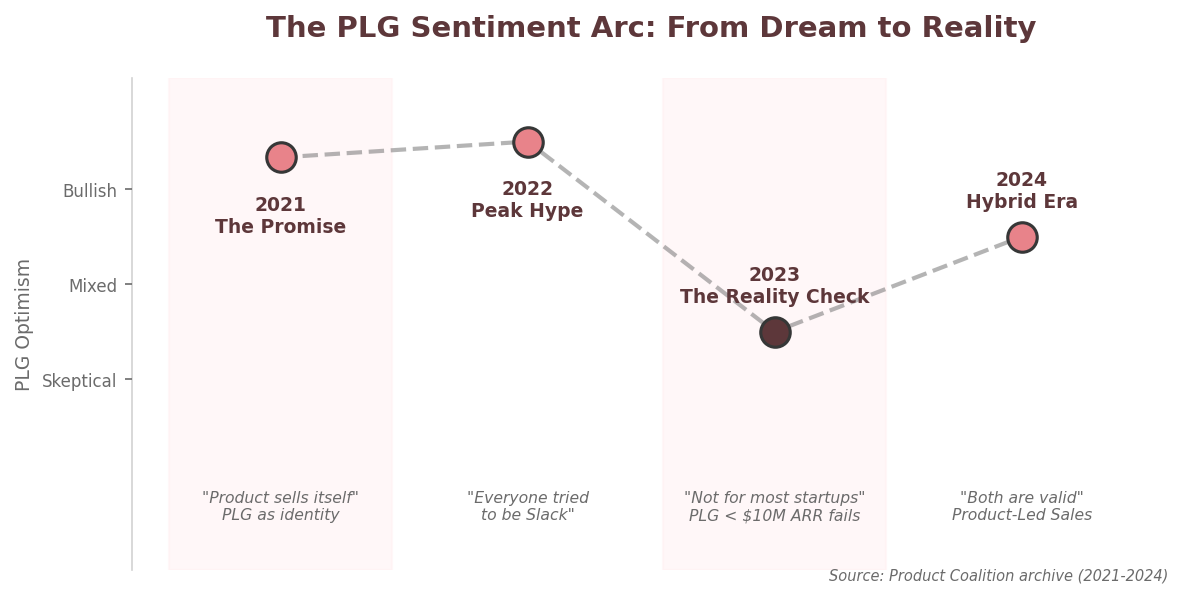 I’ve been reading through our archive of Product-Led Growth articles this week, and something funny kept happening. The earlier the piece, the more certain the author sounded. By 2023, everyone was hedging. That arc tells a story worth tracing.